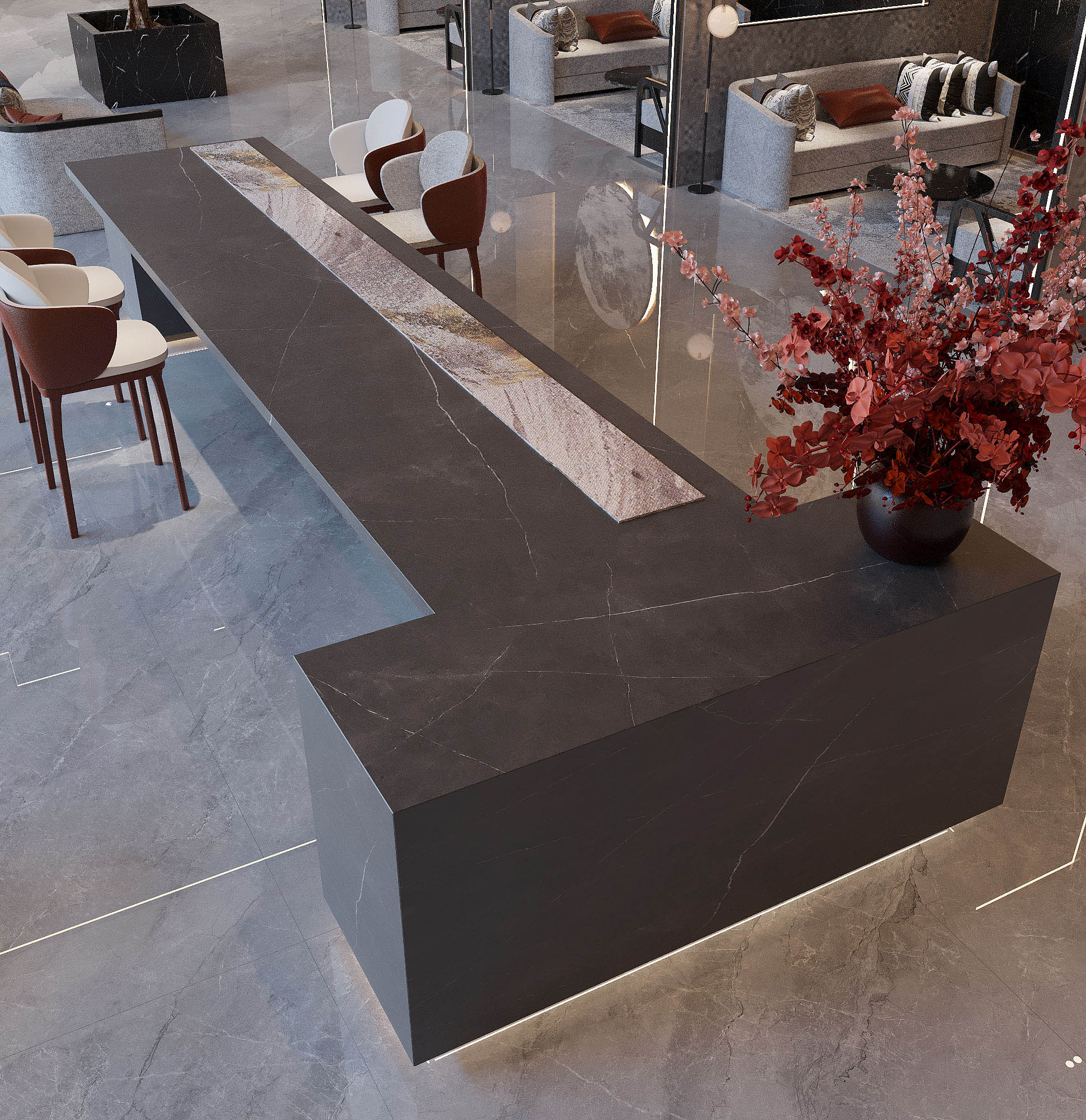 الألواح الحجرية الملبدة طبيعية بنسبة 100% ومحايدة للكربون، ومناسبة للمواصفات في أي تطبيق أسطح احترافي أو سكني.