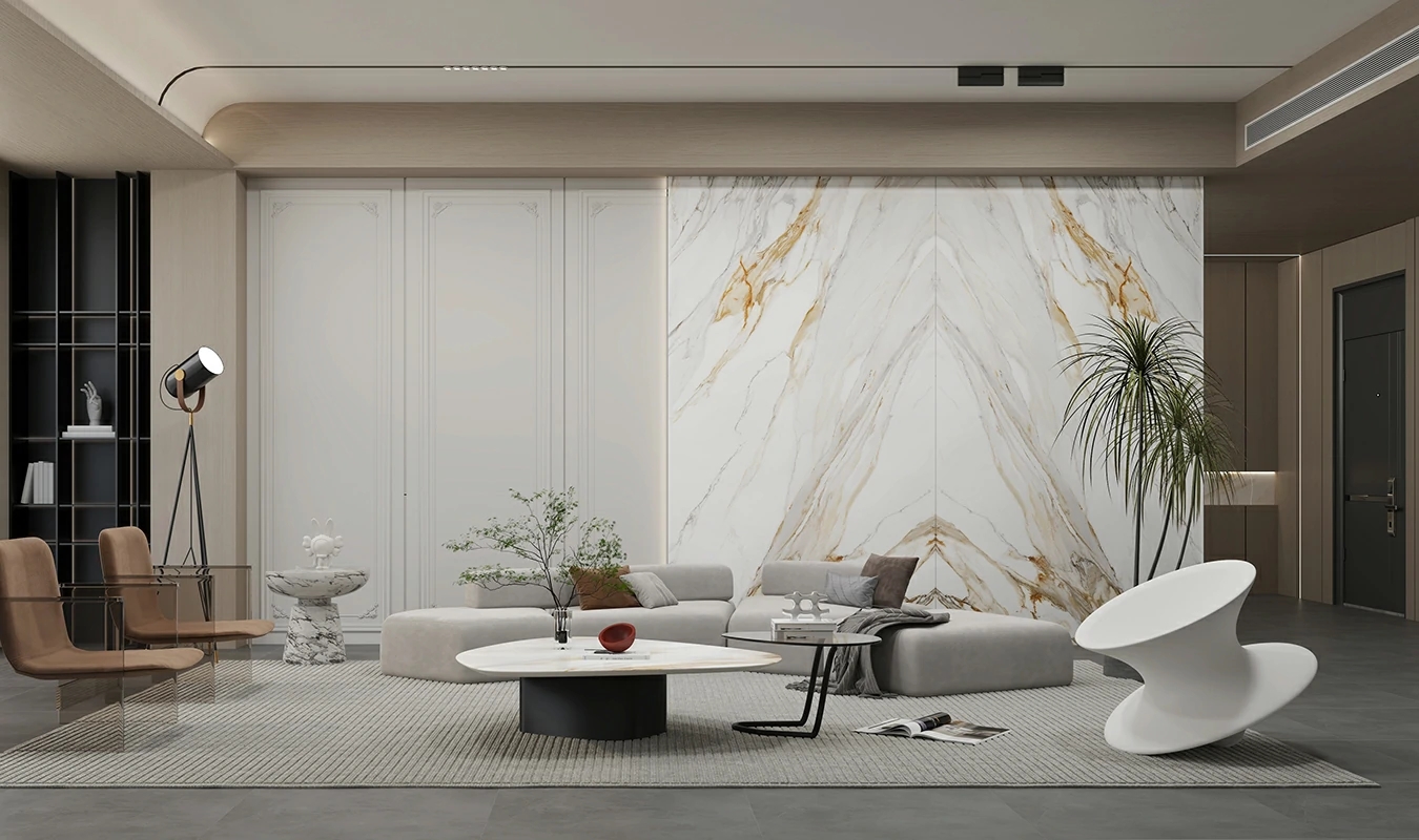 حجر متكلس ]، "الحجر" كما يوحي اسمه، يختار الحجر الفاخر الحالي باعتباره الناقل للتعبير، والذي يتميز بملمس واضح، وطبقات غنية، وسطح لوح رقيق وأنيق. الخطوط العريضة للملمس الذهبي، وتغييرات الملمس تنتج إحساسًا طبيعيًا وديناميكيًا بالجمال، مقارنة بالأعمال الفنية النادرة ذات القيمة، وملمس الحجر الفاخر مدمج تمامًا في جمال الفخامة والأناقة، مما يسلط الضوء على جودة نسيج الحياة.