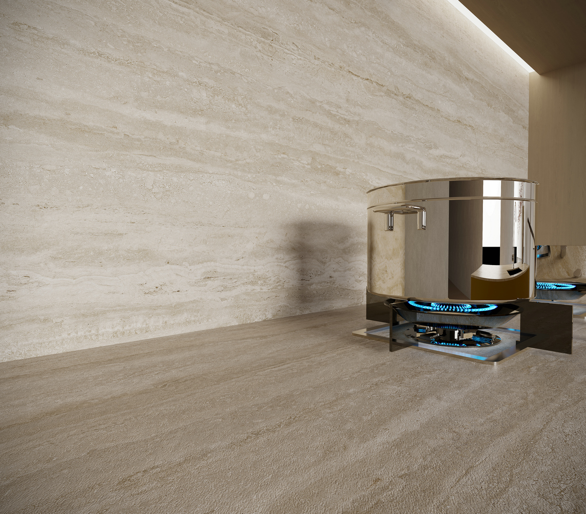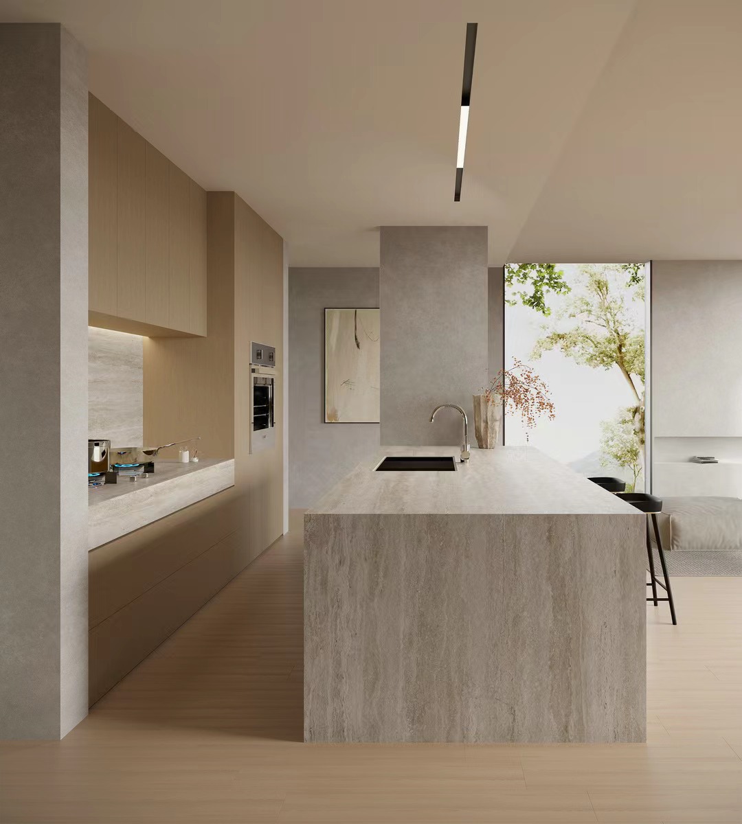 اللون الفاتح واللمسة الطبيعية والضوء الناعم معًا يمنح المشاهد متعة حسية مزدوجة للرؤية واللمس. يتم إخفاء تفاصيل النسيج الحجري في ملليمتر من التصميم، بحيث تزدهر المادة الكلاسيكية بمزاج حديث وفني.
