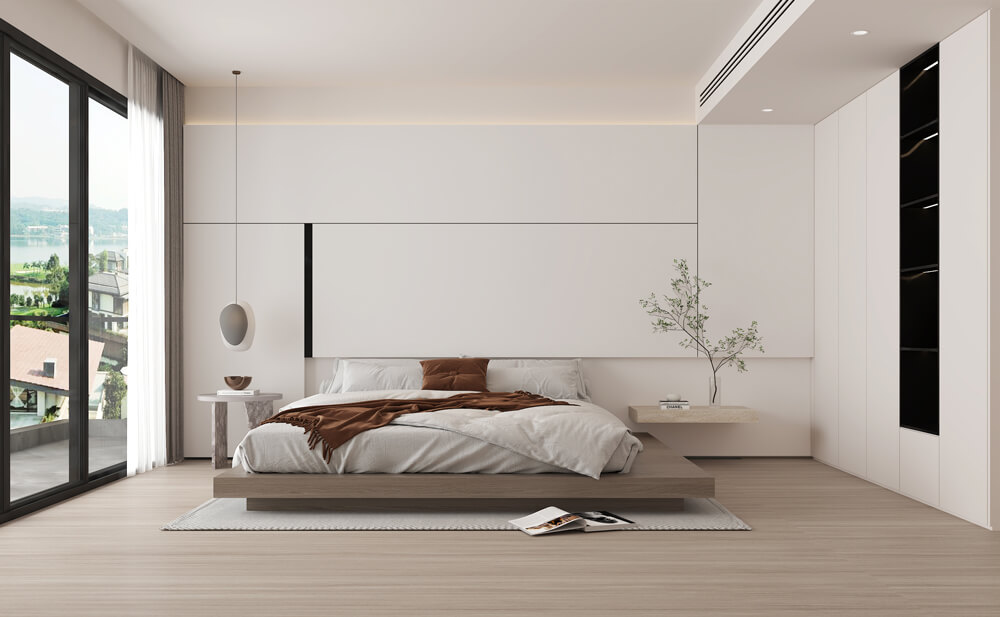 لإنشاء تصميم مثل صمت Zen أو النمط البسيط، يجب أن يظل لون المساحة بسيطًا. الأبيض مع انخفاض تشبع الرمادي الفاتح، والبيج الفاتح والألوان المماثلة الأخرى، يمكن أن يقدم شعورًا طبيعيًا ونقيًا، مع تعزيز تأثير الامتداد البصري.